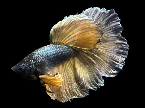 Yellow Copper Halfmoon Male Betta | M3080